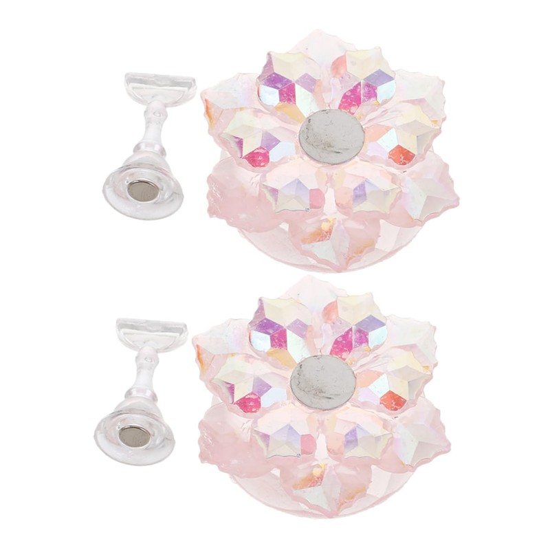 Outanaya 2pcs Iridescent Cherry Blossom Nail Practice Stand Magnetic Display Holder for Fake Nails Tool Fixed Display Stand Convenient Manicure Accessory for Salon and Home Use
