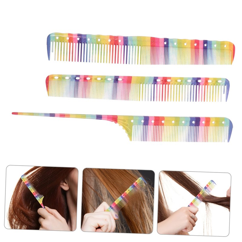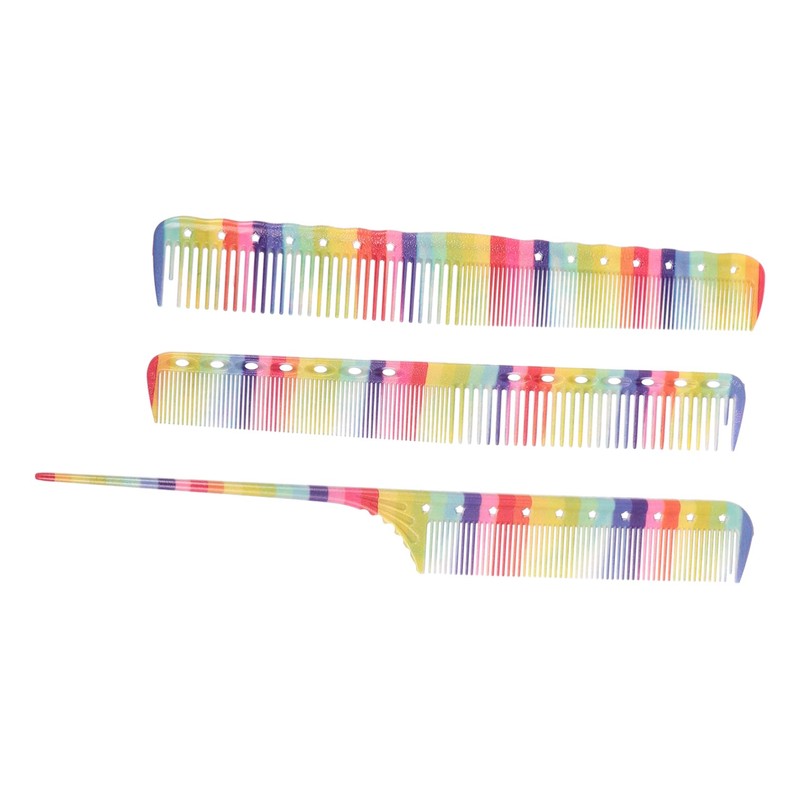 Outanaya 3pcs Rainbow Haircut Combs Set Plastic Hair Styling Combs for Hair Salon for Barbers and Home Use Random Style