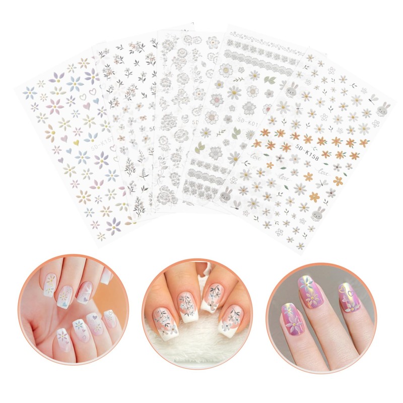 Outanaya 5sheets Flower Nail Art Stickers for Easy DIY Manicure Decorative Daisy Decals for Stunning Nail Design for Friends