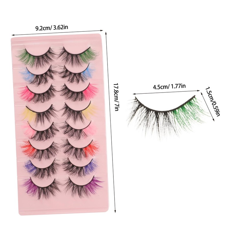 -Size:17.80X9.20X1.50cm/7.00X3.62X0 colored lashes.