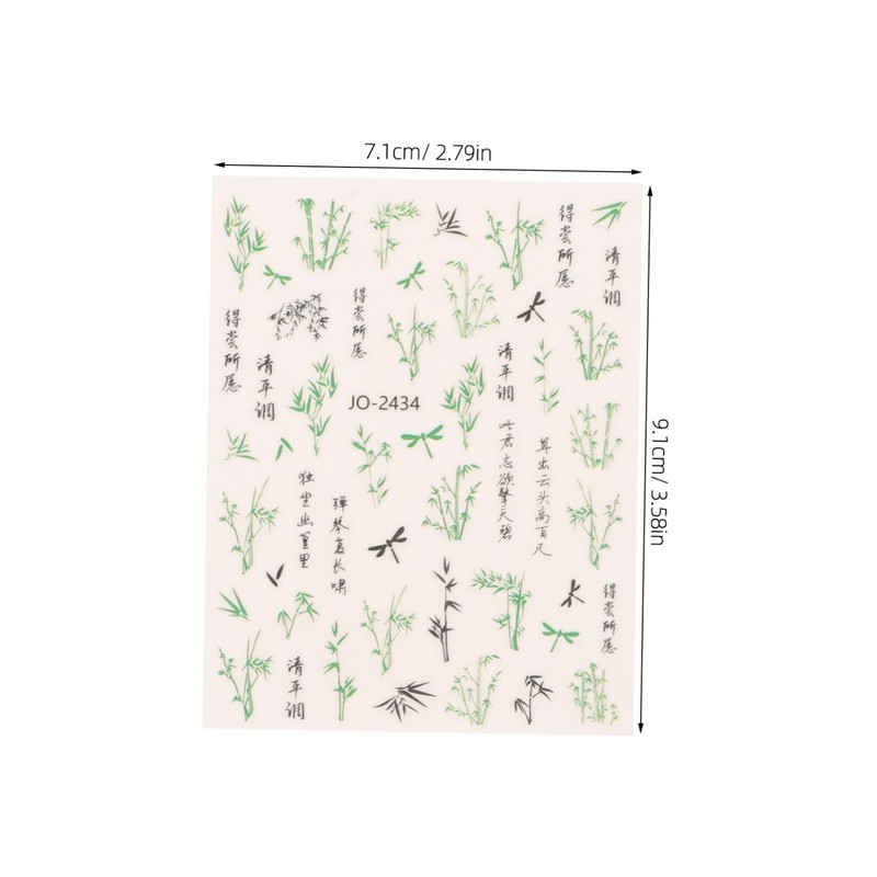 Outanaya Chinese Style Nail Art Stickers 4 Sheets Decorative Bamboo and Ink Rose Designs for Manicure Easy to Apply Fingernail Decals for Nail Art Enthusiasts