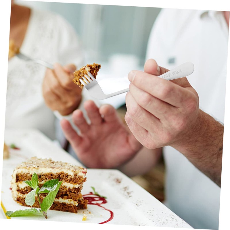 Outanaya Elderly Feeding Assistance Spoon Fork Angled Design Patient-friendly Leakproof Easy to Use