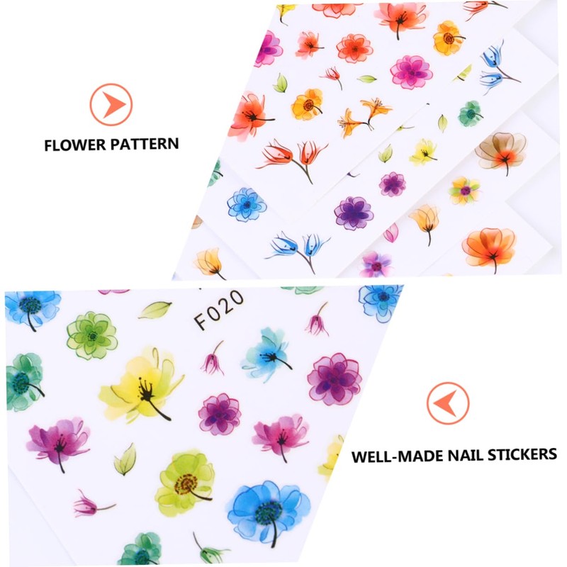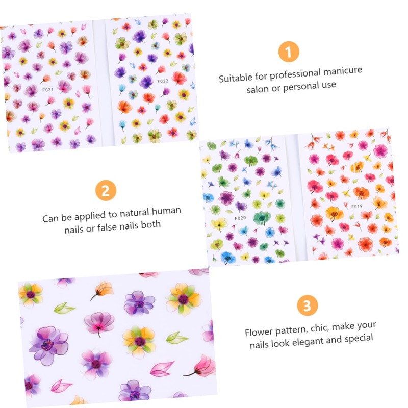 Outanaya Flower Nail Art Stickers 3D 8pcs Mixed Pattern Sticker Sheets for Professional or Personal Use