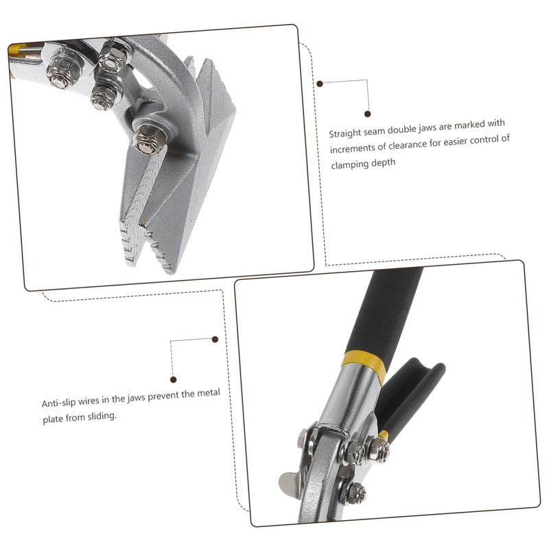 - Seaming pliers: metal seamer tool anti-slip wires in the jaws prevent the metal plate from sliding.