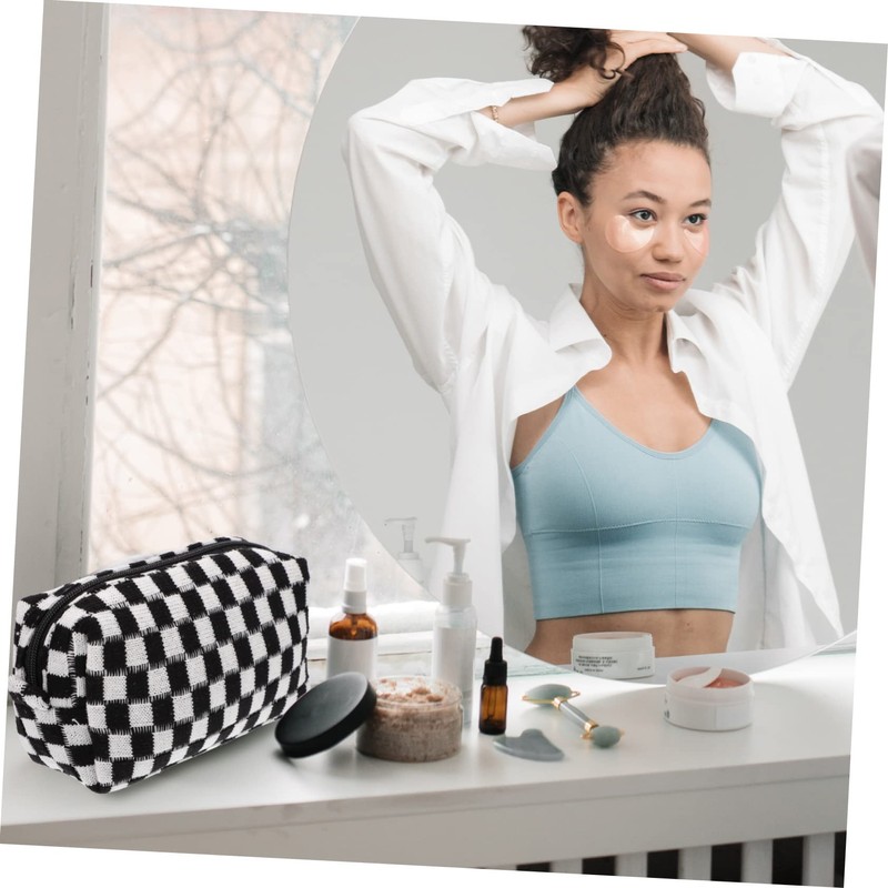 - The makeup storage bag with zipper pull keep your items and organized Checkered Toiletry Bag.