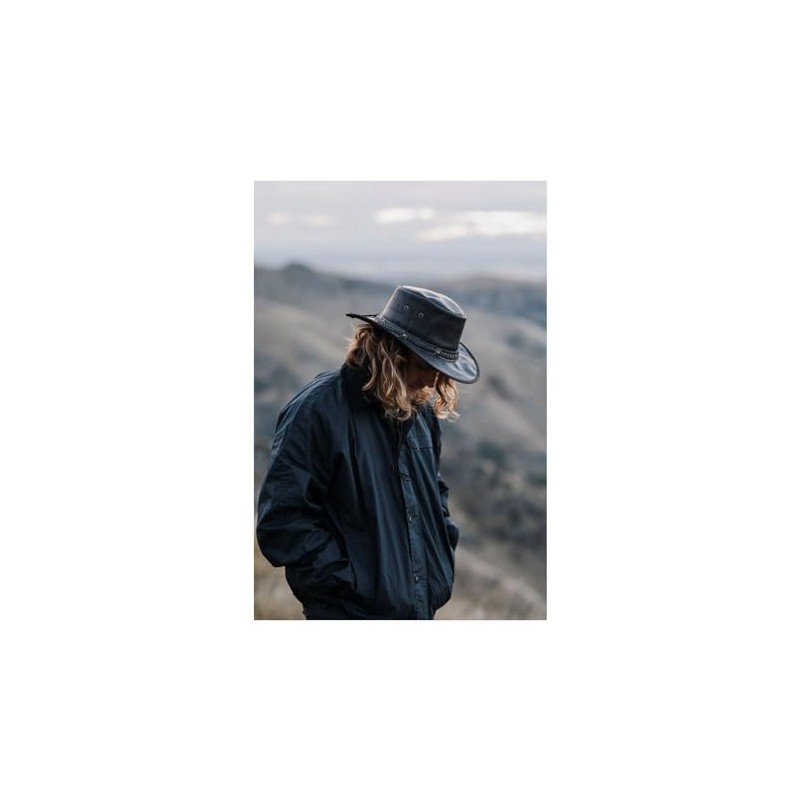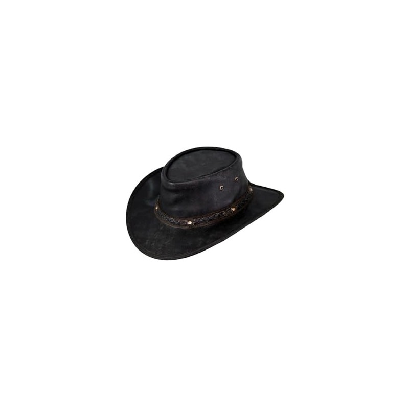 Outback Trading Men's 1377 Iron Bark UPF 50 Breathable Crushable Leather Western Cowboy Hat, Chocolate, Small