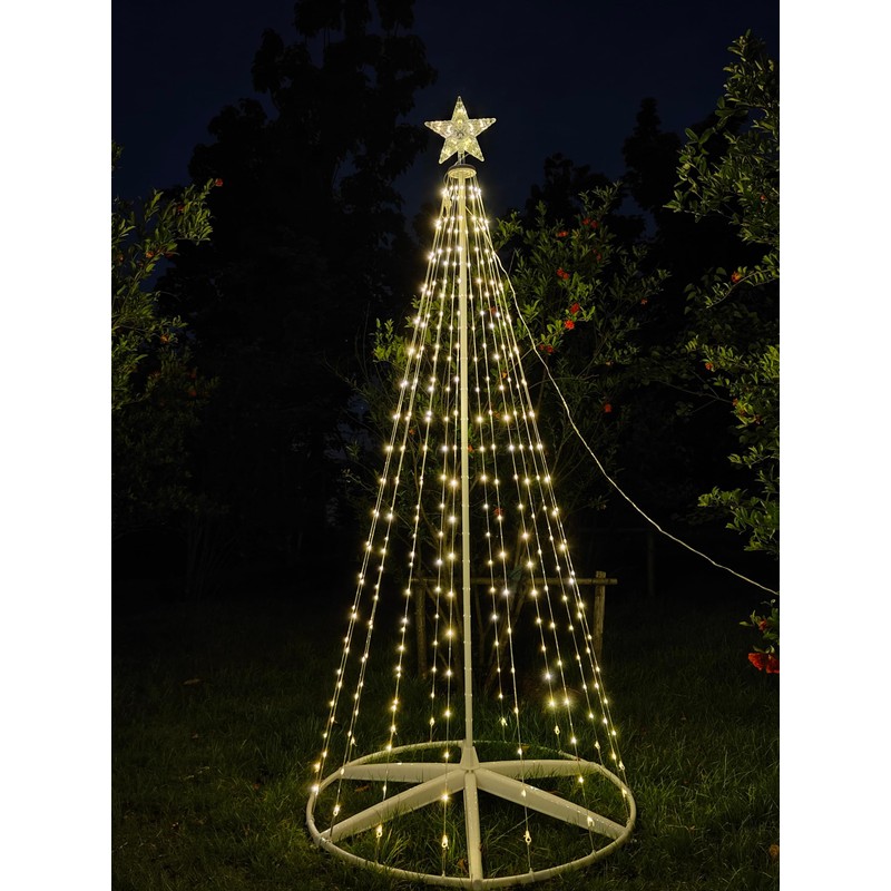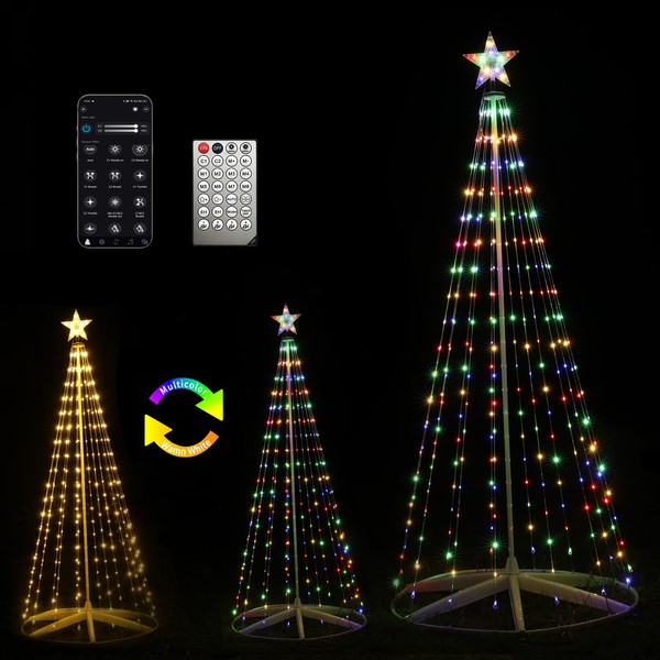 - The app and remote control 7FT Heavy duty windproof Christmas tree: Large high quality Christmas tree with 328 LED lights and glowing star top hat. Bluetooth connection app to control colorful Christmas tree. Outdoor Yard Lawn Xmas Decorations: The waterproof rating of Lights, Power and Control Box are IP44, IP44 and IP55 respectively.