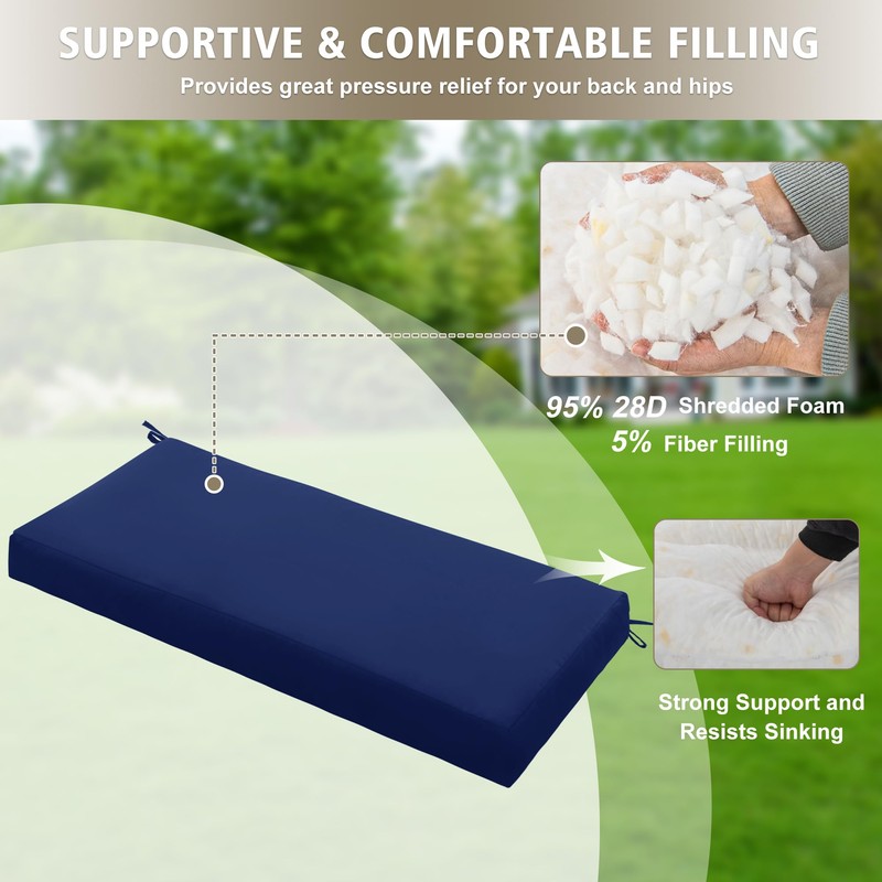 Outdoor Bench Cushion Waterproof 42"x18" – Fade-Resistant Patio Furniture Cushion with Ties for Porch Swing, Loveseat, or Indoor Bench Replacement, Navy Blue