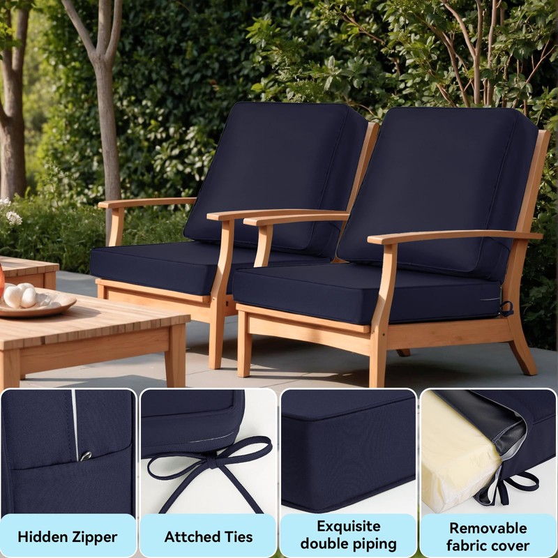Outdoor Chair Cushion Set 22x 22in, Waterproof & Fade Resistant Patio Furniture Seat Cushions, 6.5" Thickened Back Cushions Mix Filling 70D High Density Spong+ Memory Spong, Removable Cover, Navy blue