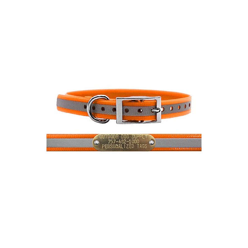 Outdoor Dog Supply's 3/4" Wide Reflective D Ring Dog Collar Strap with Custom Brass Name Plate … (Reflective Orange)