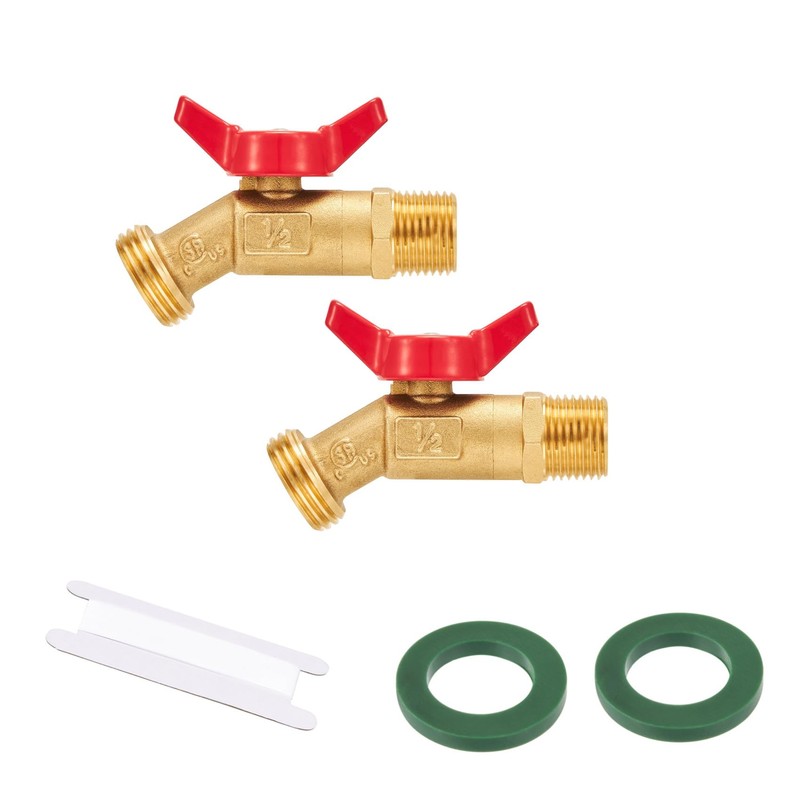 Outdoor Garden Hose Faucet Ball Valve Hose Bibb Shut Off Valve 1/2" Male NPT x 3/4" Male GHT Threaded Spigot 1/4 Turn Shut Off Hose Bib with Handle 2pcs (1/2" Male NPT)