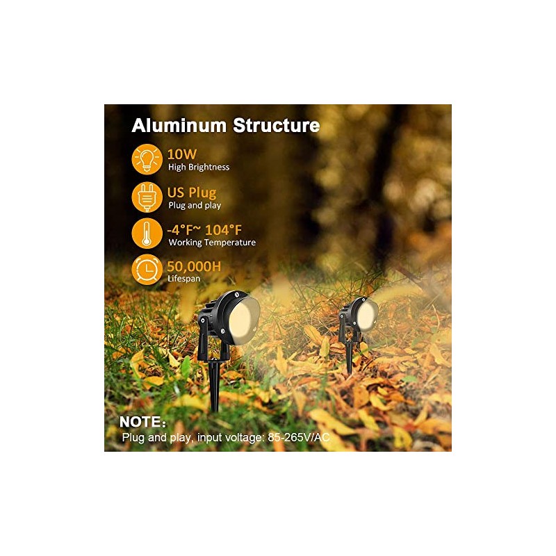 - 【LONG SERVICE LIFE】 Landscape spot lights outdoor adopt upgraded die-cast aluminum lamp body and hgih quality LED chips. It has a stable lighting performance,longer service life up to 50,000 hours, reduce your maintenance costs.