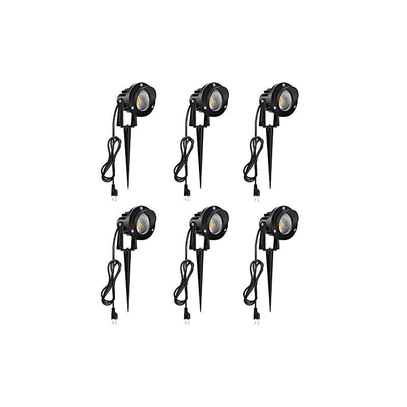 Outdoor Landscape Lights, 10W 120V AC LED Landscape Spot Light with Metal Ground Spike, 3000K Warm White, IP65 Waterproof, 5FT Cord with US Plug for Lawn, Garden, Yard, Flag Light (6 Pack)