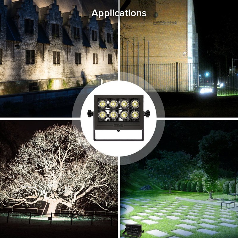 - LIGHT WEIGHT: this outdoor flood light is made of ceramic and high quality PC, different from all other floodlights on the market which are made of electric conductive aluminum, fragile glass and heavy steel. 8 LIGHT SOURCES: 120 degree beam angle, light up larger area.