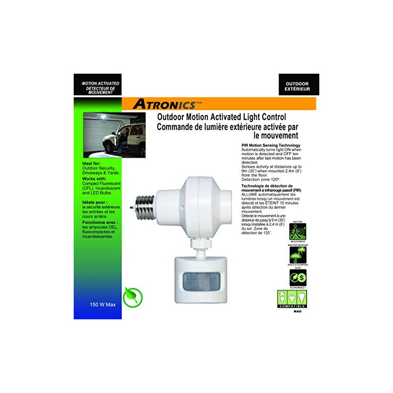 - CAUTION: This motion sensor Light Control is not designed for use with an enclosed or shaded fixture of any kind. Infrared cannot penetrate glass or plastic. Works with any compact fluorescent (CFL), 150 Watts Max.
