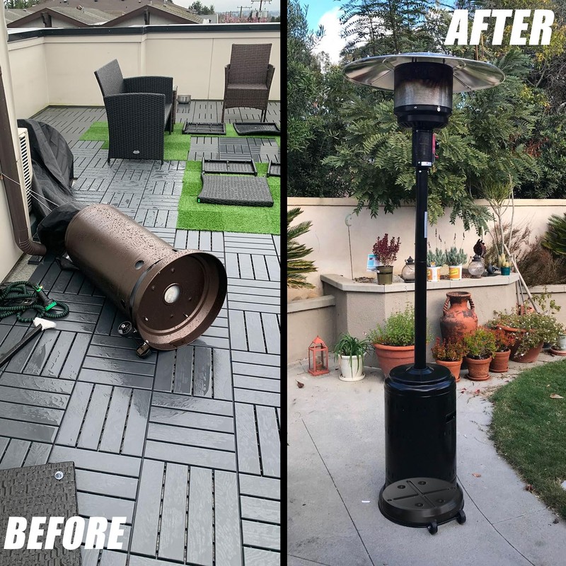 Bladder is able to be filled with water or sand to stabilize the tall patio heater