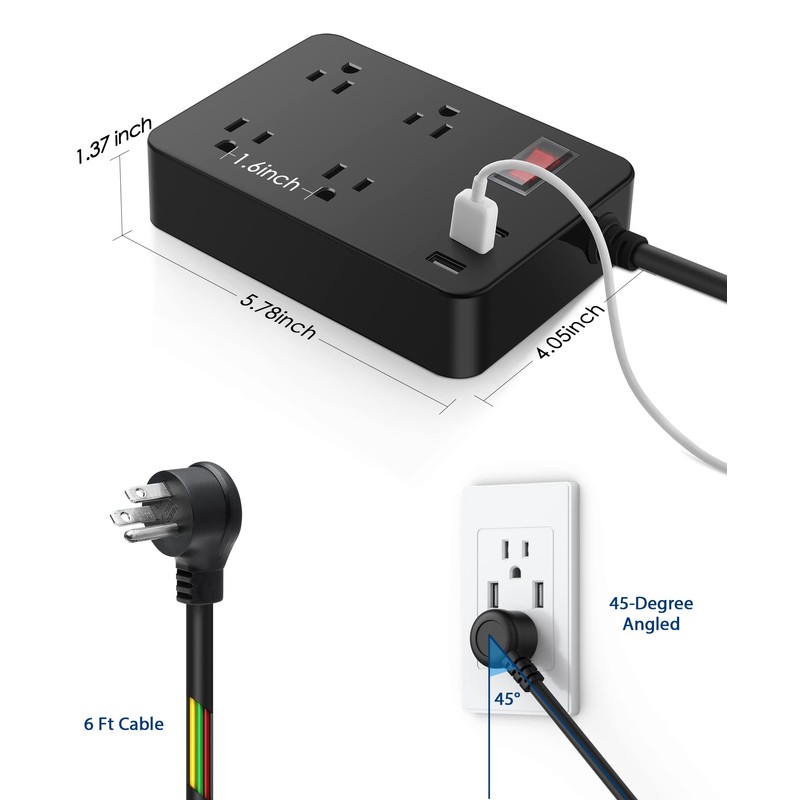 - WALL-MOUNTABLE: With four keyhole slots and a 6-foot extension cord, it is easy to hang on the power strip on a wall or panel for accessibility.