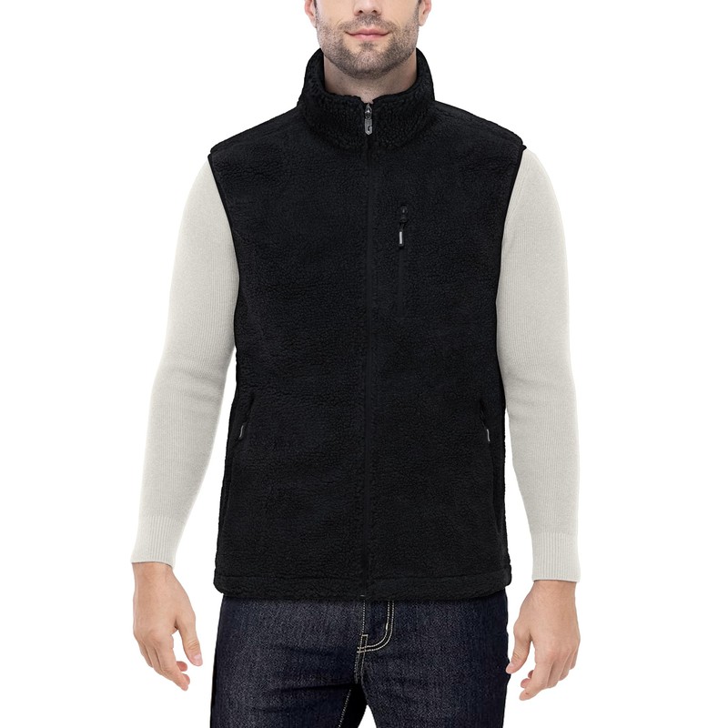- Features----This polar fleece vest features a modern classic fit, active cut, soft and stretchy fleece, drawstring waist, elasticized armholes, 5 pockets, smooth & sturdy SBS zippers and modest stand collar which can be zipped all the way up for warmth or folded down.