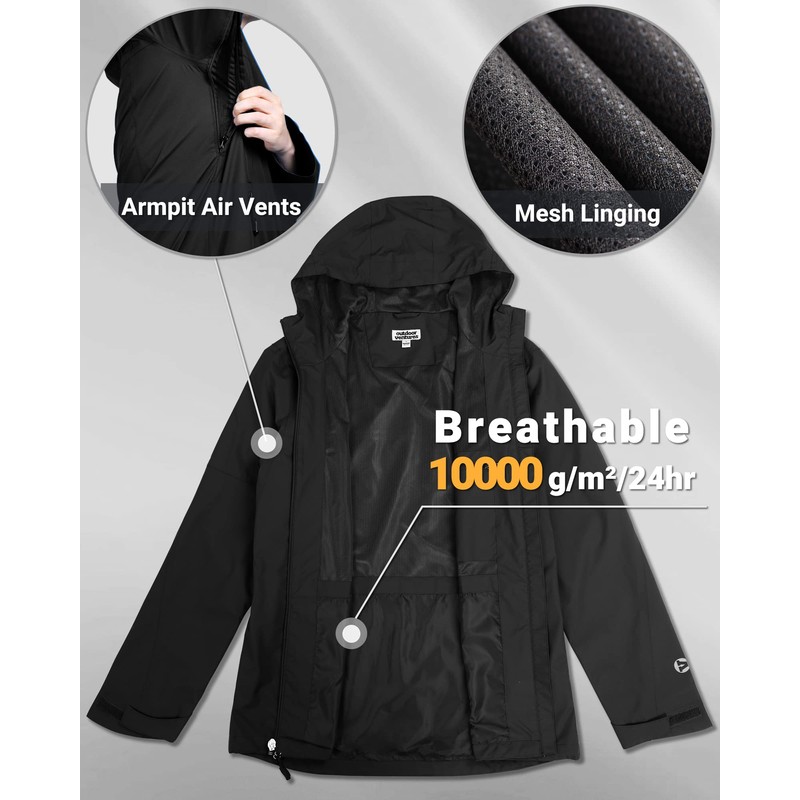 - Enhanced Waterproof & Breathable: Our raincoat supports high quality waterproof function, All zippers outside are 100% water resistant, keep your storage items dry; Armpit air vents improve air circulation, dispersing excess heat and maintaining dry. And mesh lining design will let you wear more comfortable, you don't worry about not breathable in summer. Drawstring hooded to adjust the width and height, fits head shape more better.