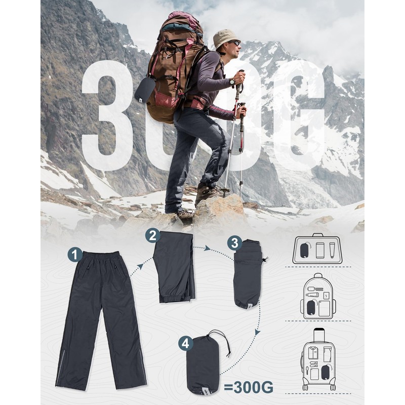 - [Enhanced Waterproof] Outdoor Ventures hiking rain pants features waterproof fabric and fully seam-sealed and welded with TPU membrane to provide excellent waterproof protection; Waterproof Rating: 5000mm/H2O.