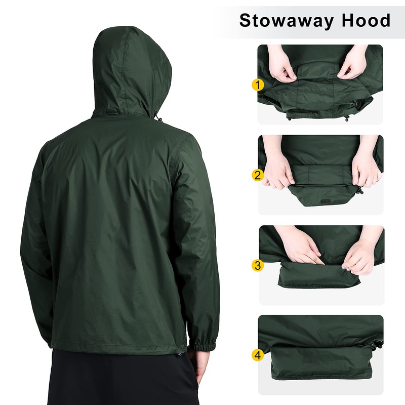 - 【Packable Ultralight Jacket】Men's rain jacket waterproof is super lightweight, with packable carrying pouch, easy to keep in your handbag, travelling bag, suitcase or car. It's intelligently designed to allow minimal space occupation.
