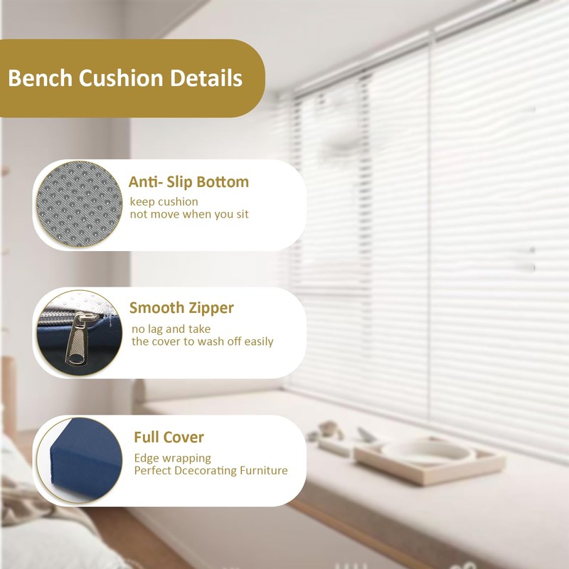 - Non-slip & Smooth - The bottom has a non-slip rubber granule dots, making the cushion less likely to shift. With smooth zipper, no lag, the bench cushion can remove cover easily, which is machine washable for easy maintenance to keep new all the time.
