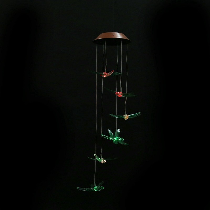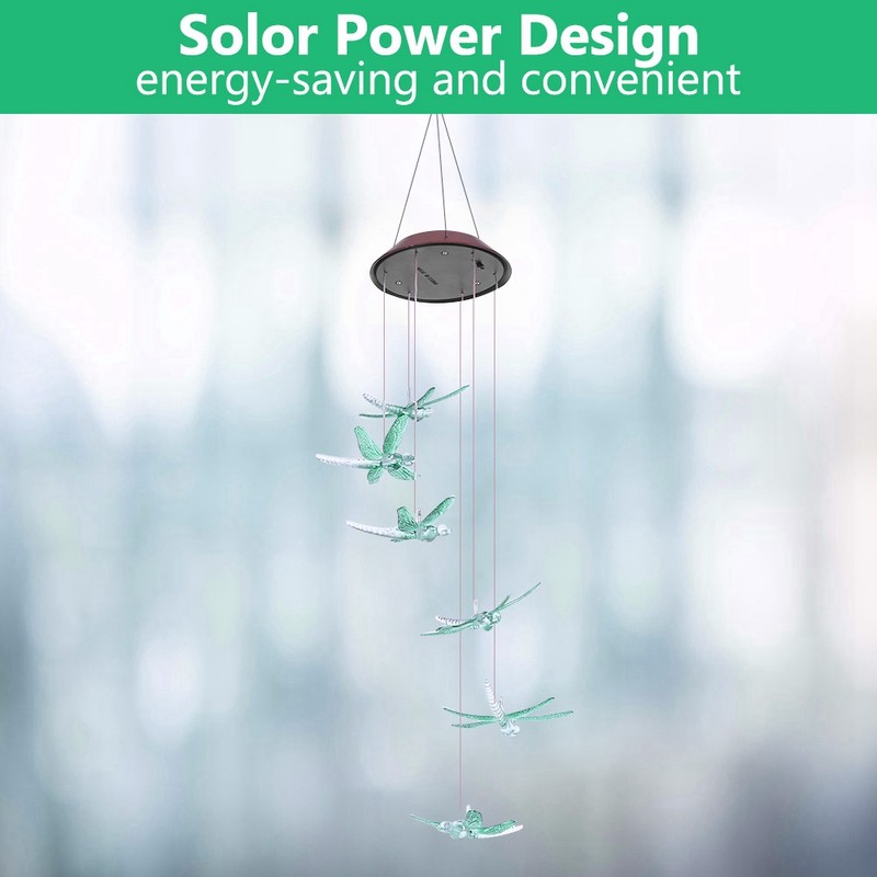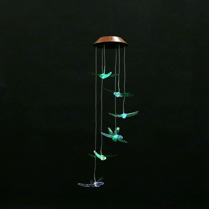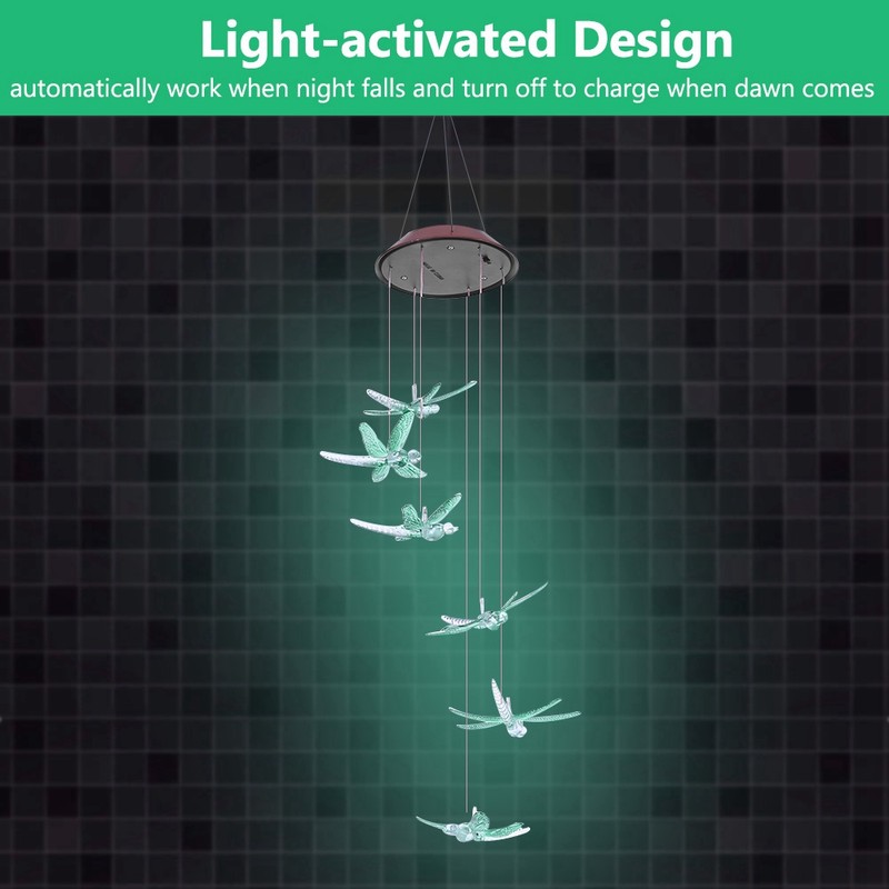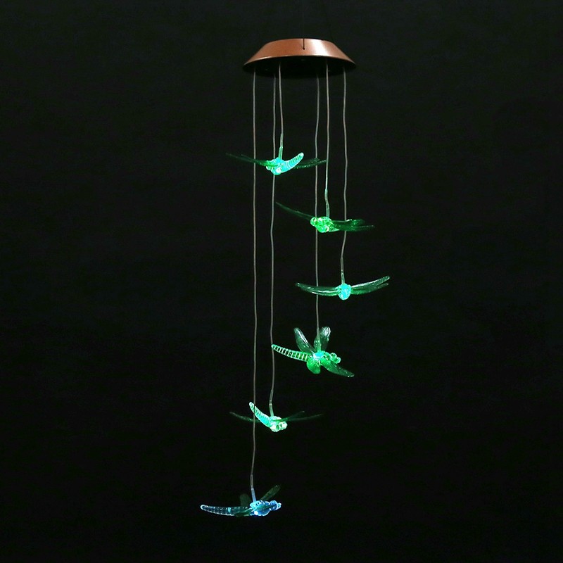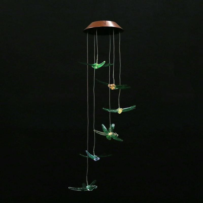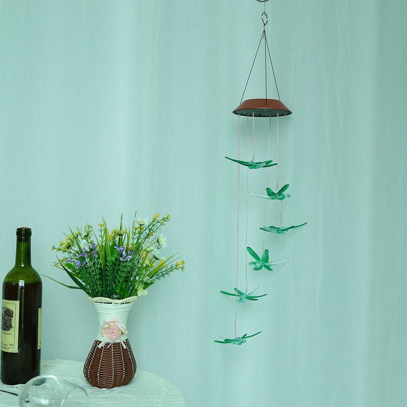 Outdoor Waterproof Solar Panel LED Dragonfly Wind Chimes Home Garden Decor Light (Green)