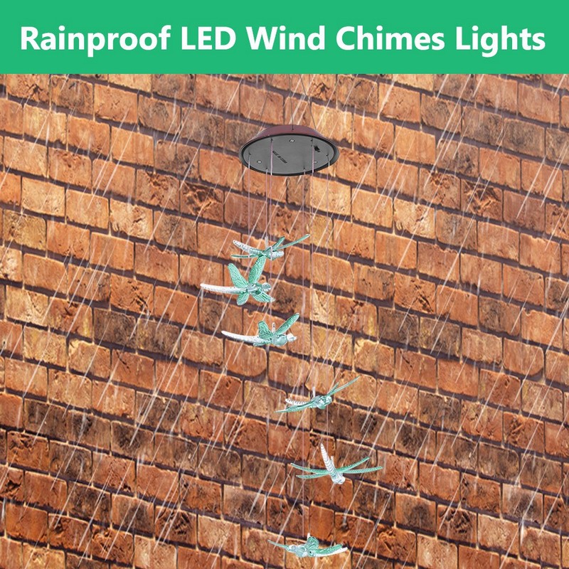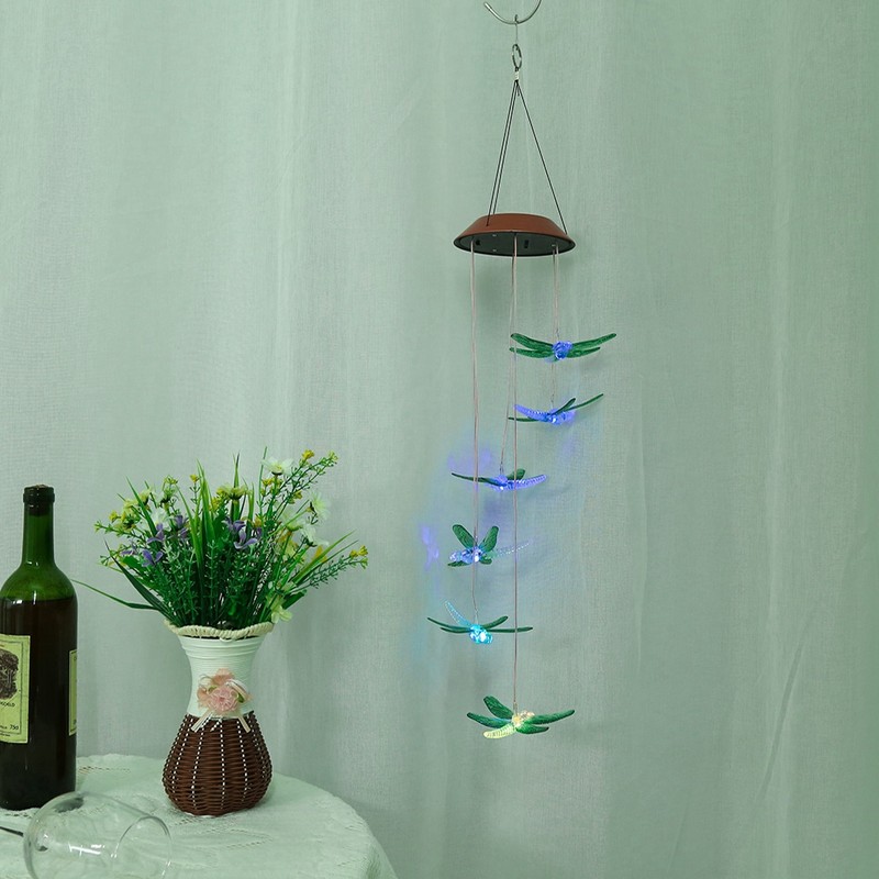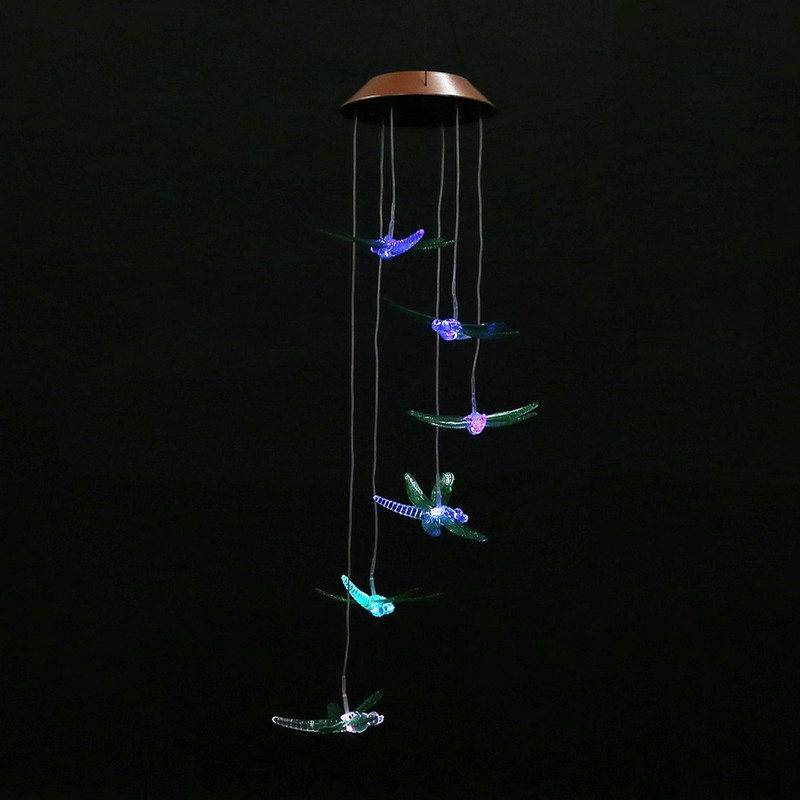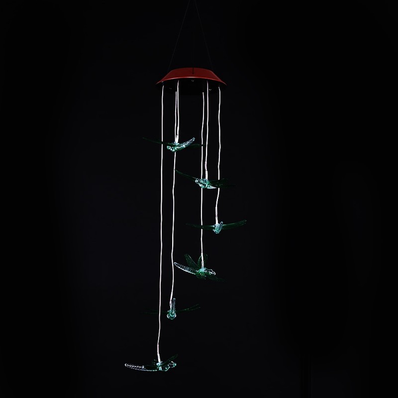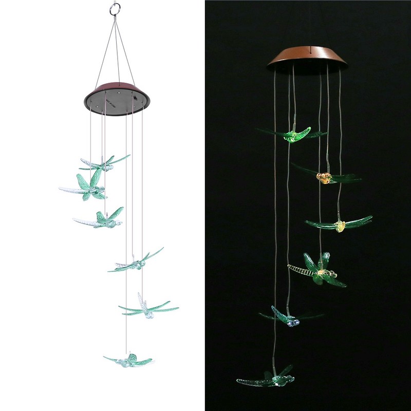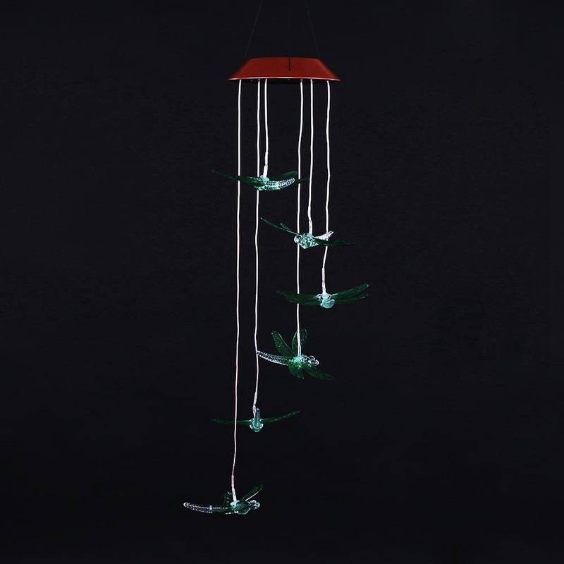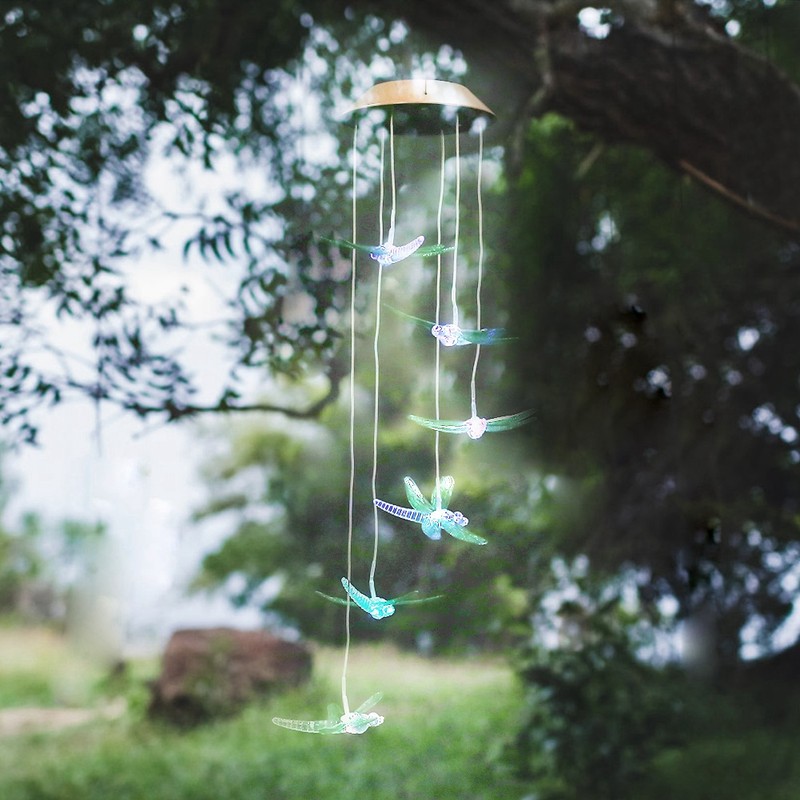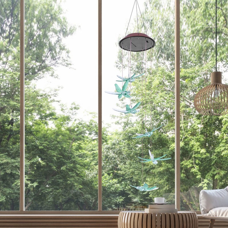 Outdoor Waterproof Solar Panel LED Dragonfly Wind Chimes Home Garden Decor Light (Green)