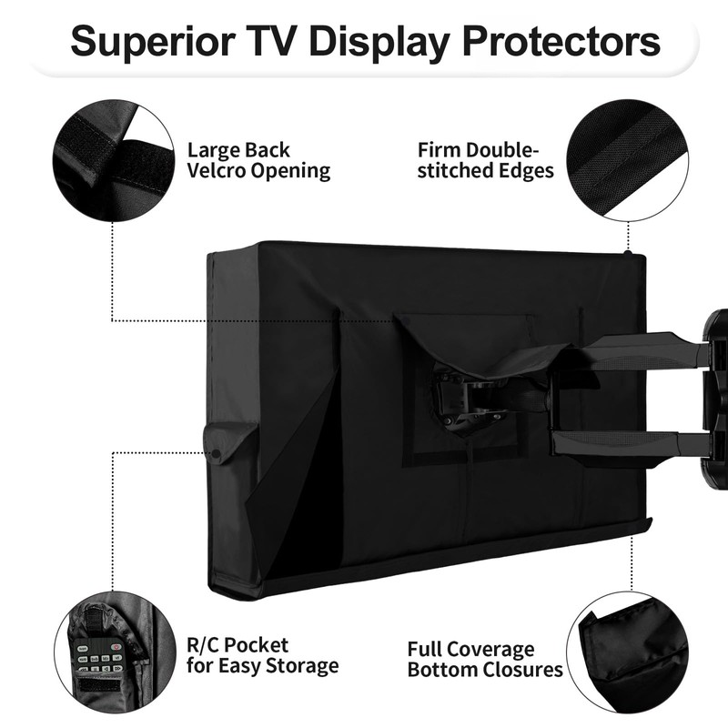 - High-Quality TV Cover: Made of 420D high density Oxford fabric with UV resistant coating and 100% waterproof PU layer, our TV cover provides much needed protection for your investment. The soft and smooth interior ensures that the screen will not be scratched. The Velcro all-wrap at the bottom gives your TV complete 360-degree coverage, and the TV cover can be easily installed and removed by even one person!