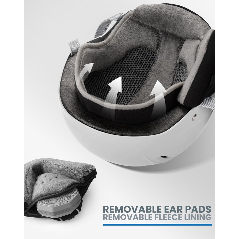 - Adjustable Fit: The snowboard helmet's detachable lining, earmuffs, and soft chin band offer cozy warmth. The adjustable dial to perfectly customize your fit.Lightweight and user-friendly, it relieve head pressure, ensuring an enjoyable snowy adventure