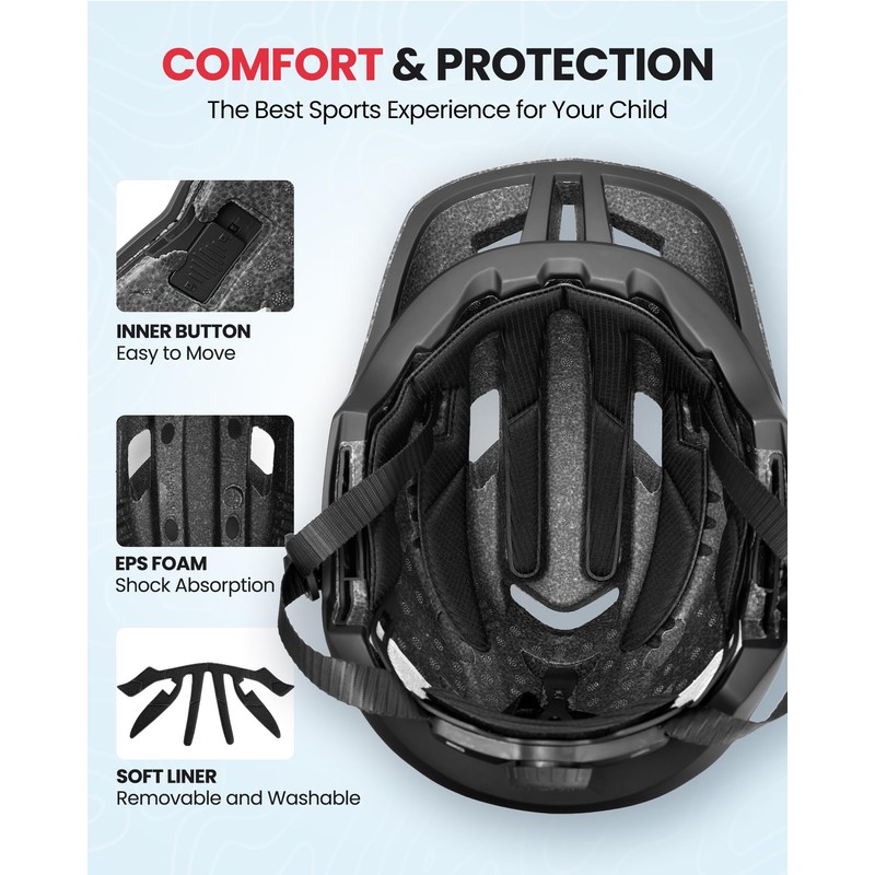 • Safety & Protection: Kids bike helmet consists of durable PC hard shell and shock-absorbing EPS padding and removable foam liner, providing multiple protection for your child's safe movement