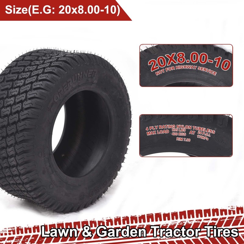 OutdoorVibe 20x8.00-10 Lawn Mower Tires - Durable Lawn Tires, Golf Cart Tires, Outdoor Vehicle Tires, Tubeless, Set of 2