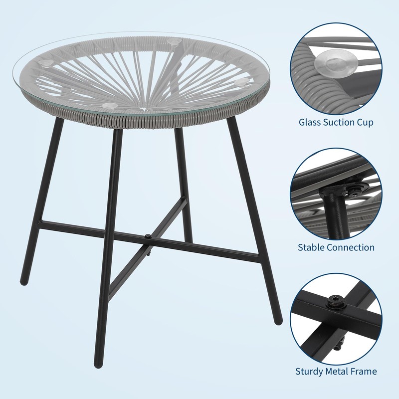 - 【3-Piece Outdoor Acapulco Set】Elevate your outdoor experience with our 3-piece Acapulco bistro set, featuring two comfortable armchairs perfectly designed for lounging alongside a stylish round accent table. The tempered glass top is ideal for holding decor, snacks, or beverages, making it a perfect addition to your relaxing moments outdoors. Enjoy quality time with loved ones in a chic setting that enhances any patio or balcony.