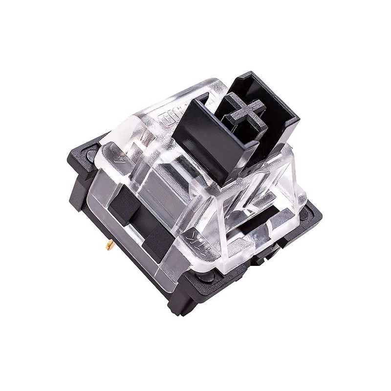 - Black Switch Suitable groups:pure professional gamers Mechanical touch: linear, soft tactile, click tactile Key sound:no sense of the paragraph, the sound slightly Pressure grams: 80 Click life 50 million operations Trigger travel: 1.5mm.