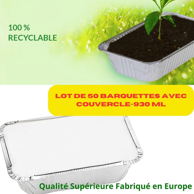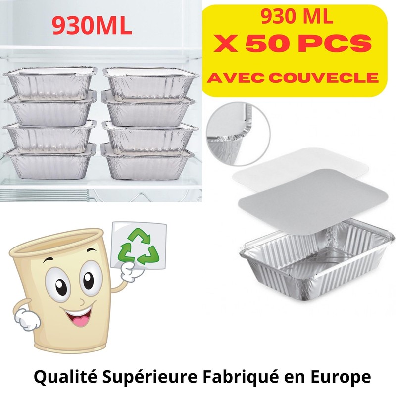 outihome 50 x 930ml Aluminium Food Bowls with Cardboard Lids Disposable Food Bowls Suitable for Oven, Grilling, Freezing, Food Storage