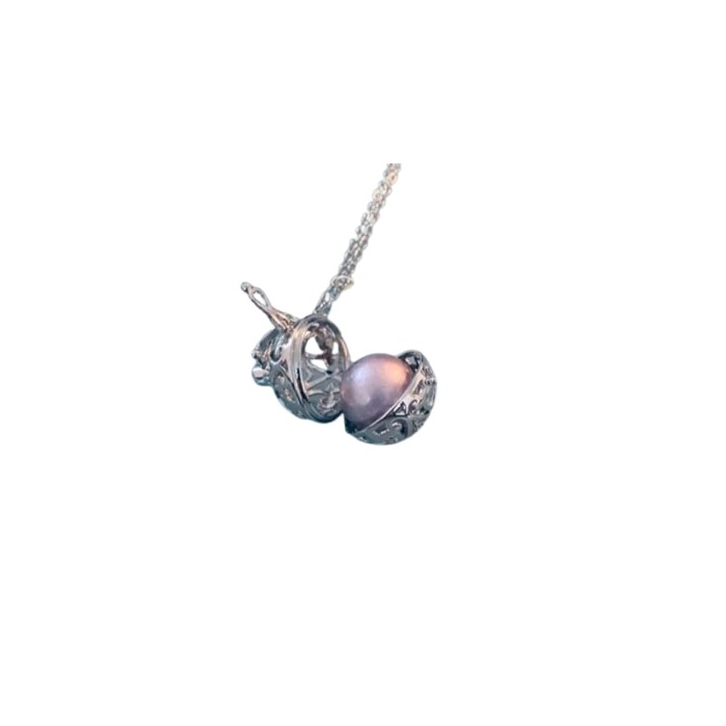 Die Kette besteht aus einer Kugel zum Öffnen, in die eine weitere Kugel mit einem kleinen Glöckchen eingeführt ist, der durch die Bewegung des Trägers einen sanften Klang erzeugt, der für das Kind auf dem Schoß wahrnehmbar ist.