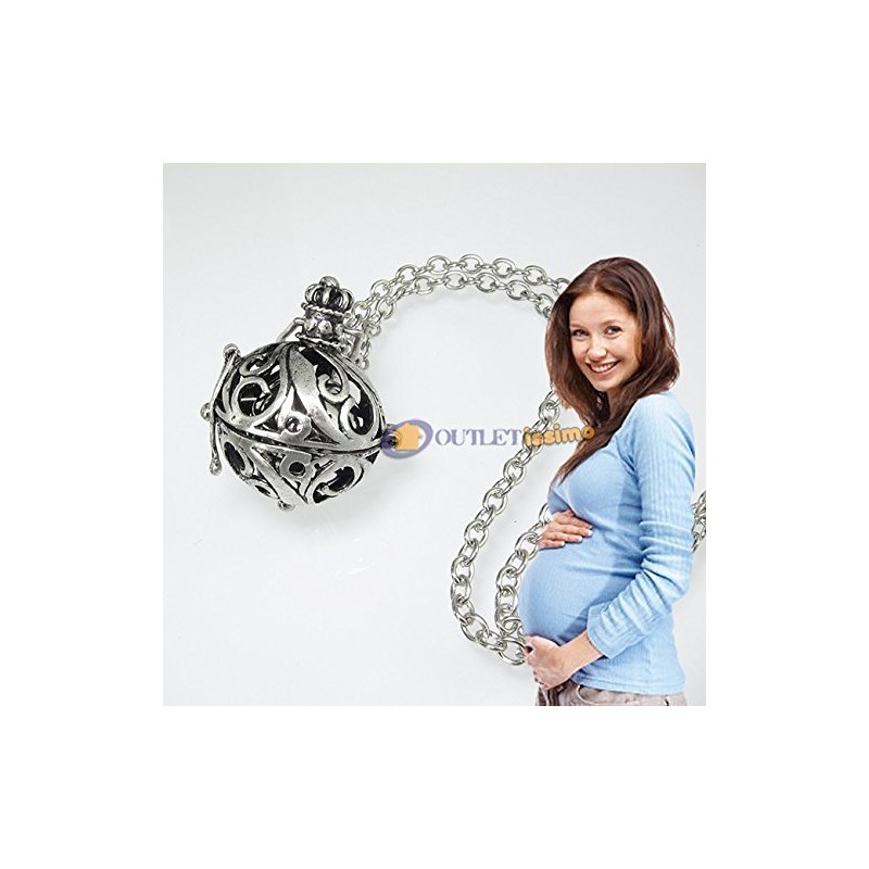 - OUTLETISSIMO Halskette mit Anhänger, Engelsrufer, Mexikanische Kugel, versilbert, 2,6 cm, Kette 70 cm, UN10, Material: Metall, ohne Edelsteine
