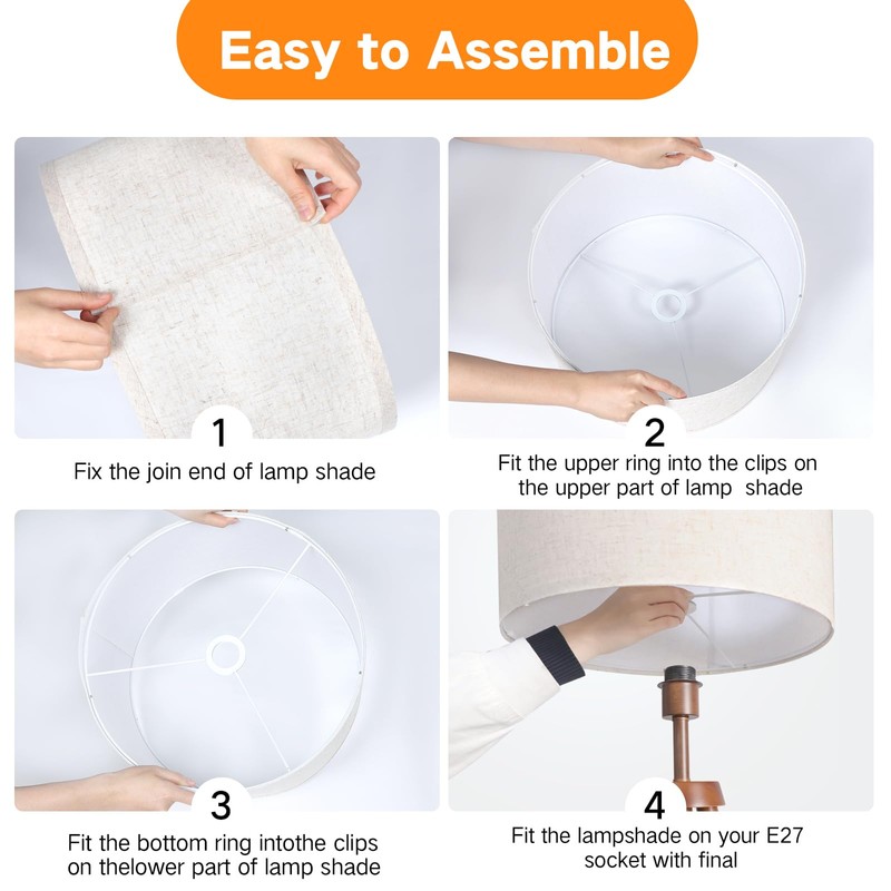 - Self Assembly Required.: Our linen lampshade is incredibly easy to install, requiring no special skills or tools. All you need to do is fix the lampshade around the metal rings by fitting it into the clips. It’s simple to set up within minutes.