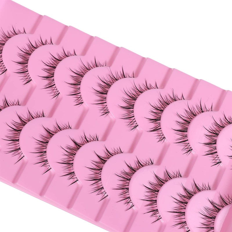 Manga Lashes Natural Look Japanese Anime Lashes Korean Asian Wispy Spiky Lashes with Clear Band Short Fake Eyelash 10 Pairs Pack by outopen