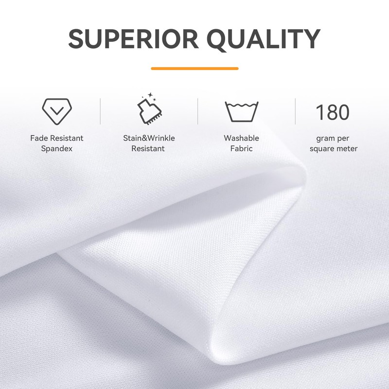 - DURABLE AND STRETCHABLE: The stretch round table cloth is made of 10% spandex, 90% polyester, wrinkle resistant stretch spandex fabric 140 GSM, pack of 8, which makes the tablecloth stretchy and more durable, no need to iron and can be laundered countless times.
