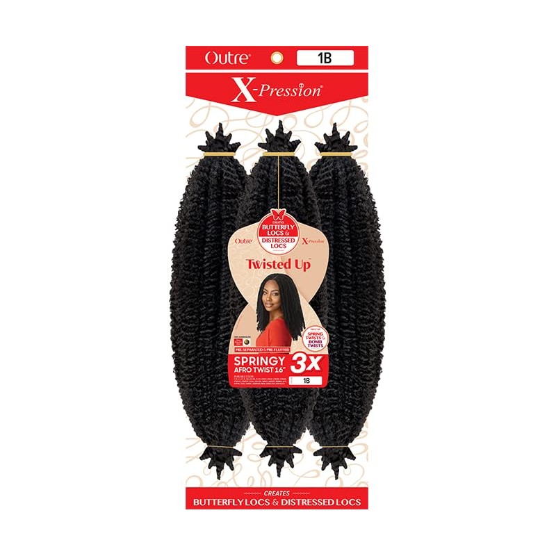 Outre X-Pression - Twisted Up - Springy Afro Twist 16" 3X (2 Pack, JET BLACK 1)