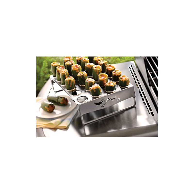 Outset QS83 Chicken Leg and Jalapeño Roaster with Collapsible Legs, Stainless Steel 7.75 x 11.5 x 3