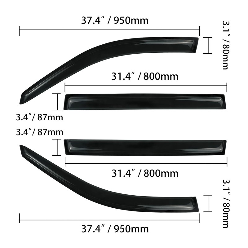 - 4 Pieces front and rear window dark smoke window visors.