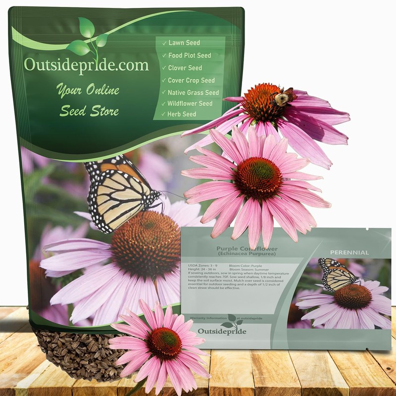 Outsidepride Purple Echinacea Coneflower Seeds - 1000 Pcs Perennial, Deer-Proof & Drought Tolerant Flower Seeds with Daisy-Like Blooms for Pollinator-Friendly Gardens, Borders, & Meadows