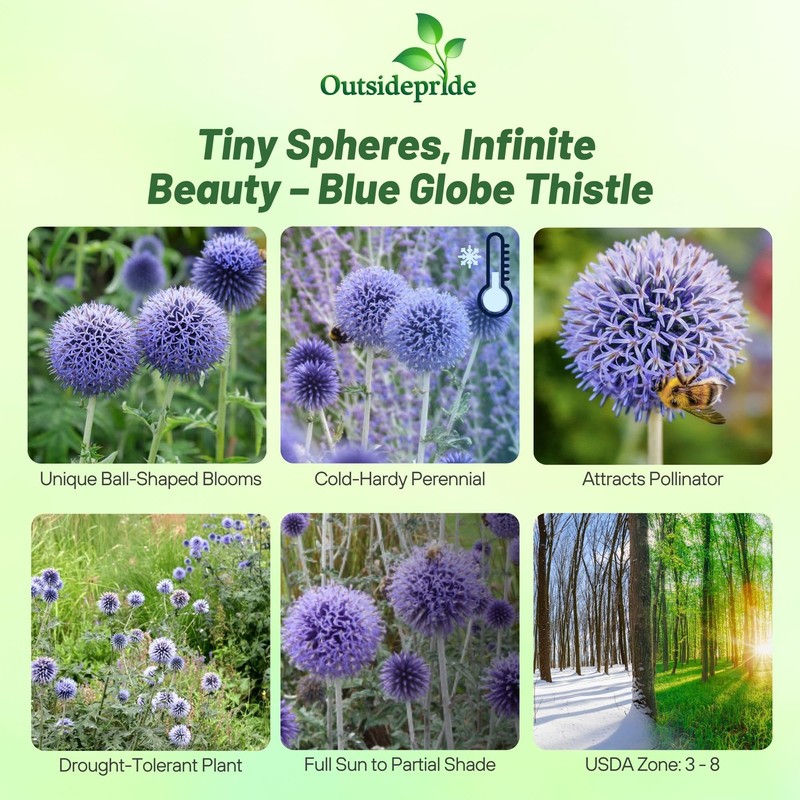 Outsidepride Blue Globe Thistle Seeds - 1000 Pcs Perennial, Drought Tolerant & Self-Seeding, Flower Seeds for Planting w/Thistle-Like Foliage & Vibrant Purple Blooms, Ideal for Xeriscaping Gardens