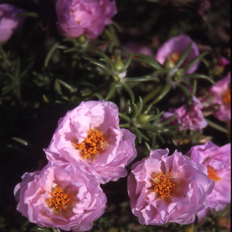 Portulaca grandiflora is commonly known as Moss Rose. It is a great ground cover for hot, dry areas. Moss Rose is a rewarding annual that is easy to grow and maintain. It makes a great edging plant for the front of a sunny border or grow it in containers and baskets. This pink variety produces 1 inch pink blooms that continue all summer long. Start Moss Rose seed indoors 6 – 8 weeks before the expected end of frost season. Press the seed into the soil but do not cover it. Keep seed moist until germination. With a temperature of 70 - 80F, germination normally occurs within 14 days. Space the plants 12 - 15 inches apart. Grow in full sun and in well-drained soil. Moss Rose can withstand heat and drought, but they perform best with an occasional deep watering. Trimming the plants during the summer will tidy their appearance and encourage blooming into fall.