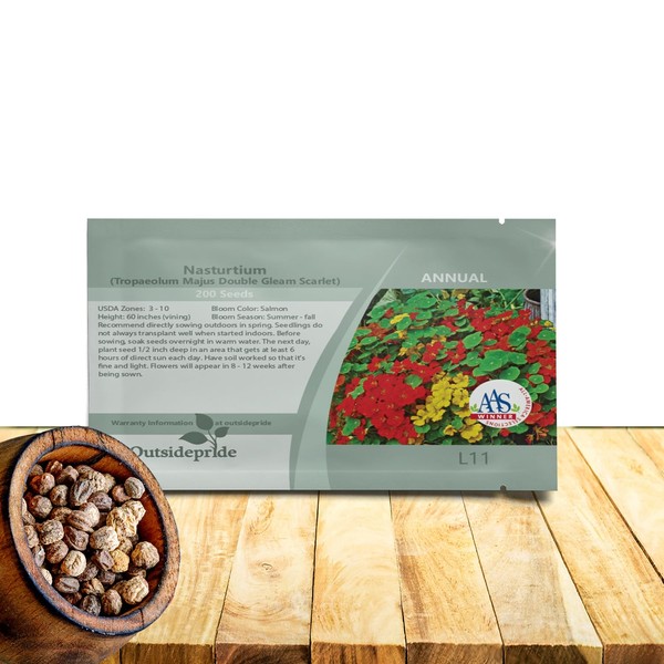 Outsidepride Double Gleam Scarlet Nasturtium Seeds - 200 pcs Annual, Dwarf, Edible, Trailing & Climbing Vine Flower Seeds for Deer Resistant Gardens, Container Plants & Hanging Baskets (AAS Winner)