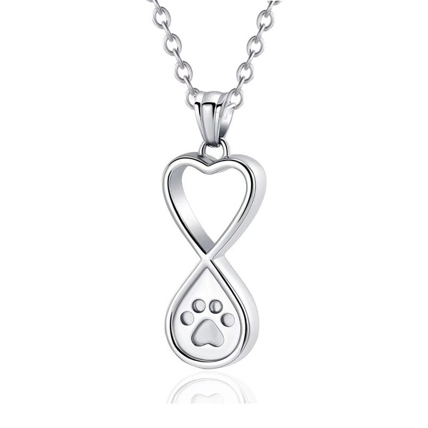 OutstandLong Cat/Dog Silver Paw Print Pet Urn Necklace for Ashes Cremation Jewelry Memorial Pendant Ashes Holder Keepsakes Jewelry