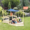 Outsunny Kids Wooden Sandbox Foldable Design, w/ Canopy, Seats, Flag, Aged 3-8 Years Old