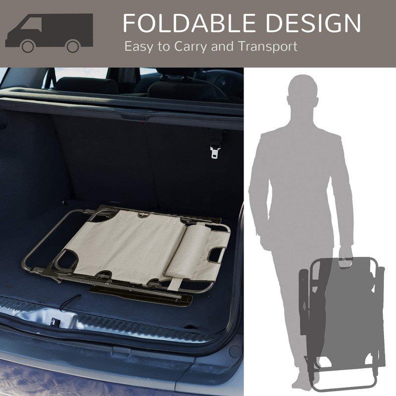This outdoor patio lounge chair from Outsunny is the perfect way to chill and enjoy a lazy sunny afternoon on the patio, balcony, deck, or in your own garden! Its curved metal frame makes this lounger perfectly fit your body and gives you strong support. It features durable Oxford fabric, making it weatherproof, UV resistant. It has a pillow which is attached by hook and loop fasteners for easy removal and cleaning. Have a seat or even lying in this lounge chair and let your worries wash away as you enjoy the soothing outdoor view. **Features:** \- Lounge chair with 120°/180° reclining angle offers you absolute relaxation in your leisure time \- Crafted from tough anti-UV and water-resistant Oxford fabric that withstands wear and tear \- Curved ergonomically designed shape better fits your body shape \- Ultimate comfort with removable padded headrest and gently contoured armrest \- Rubberized wraps on arms and bottom create a soft finish to prevent scratching on frame \- Easy assembly is required **Specifications:** \- Color: Cream White \- Material: Metal Frame, Oxford Fabric \- Max Load: 330 lbs. \- Overall Dimension: 25.5" W x 70" D x 35.5" H \- Reclining Dimension: 25.5" W x 70" D x 15.25" H \- Seat Dimension: 20.25" W x 19.75" D x 17.75" H \- Armrest Height: 25.25" \- Folding Dimension: 38.25" L x 7.5" W x 25.5" H \- Net Weight: 13 lbs.